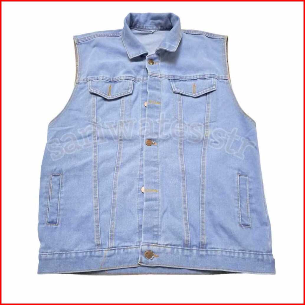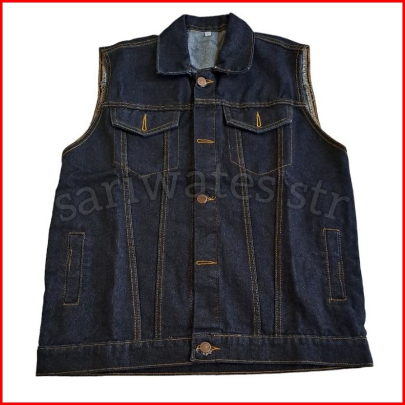 Rompi Jeans Bigsize Pria Wanita Vest Jumbo Jaket Denim Tanpa Lengan Navy Xxl Xxxl Xxxxl 3xl 4xl 5xl