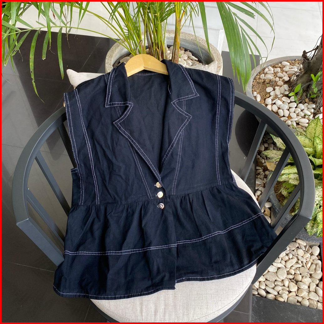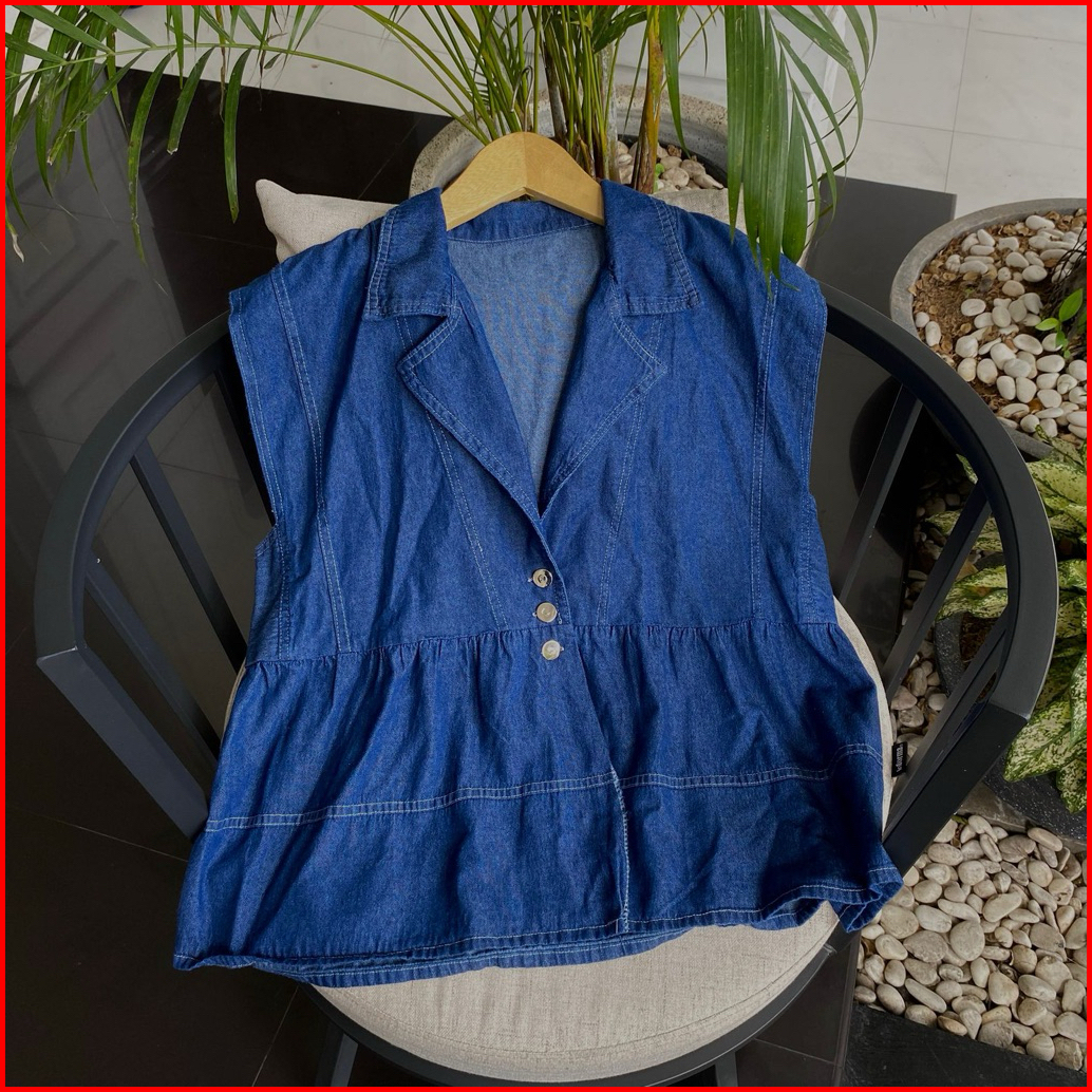 Jisso.clo Geo Vest Denim Oversize Jacket Rompi Overisze Vest Jeans Wanita Korean Style