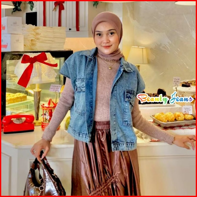 Cassandra Jacket Rompi Jeans Denim Oversize Vest Jins Vintage Wanita Tanpa Lengan Outer Blazer Oversize Korean Style Kek