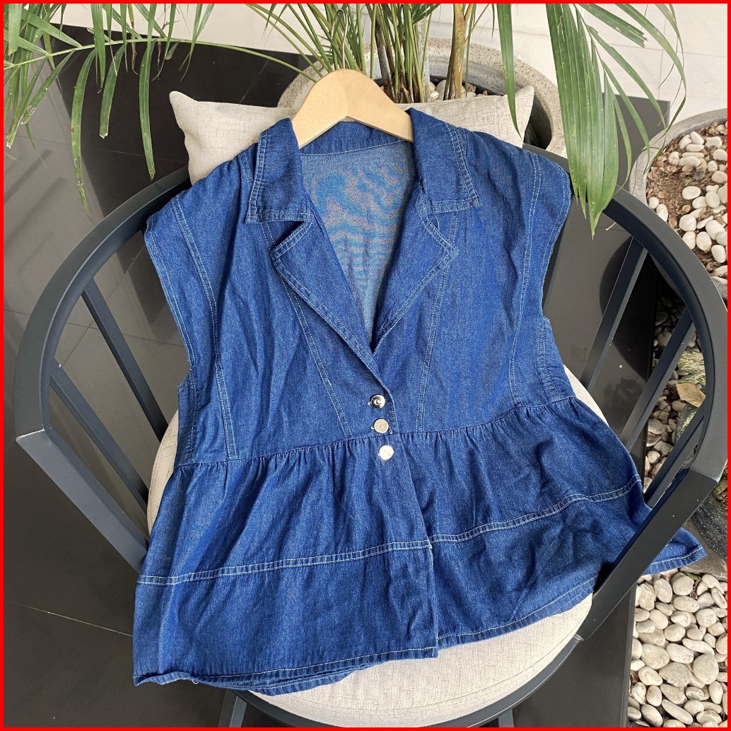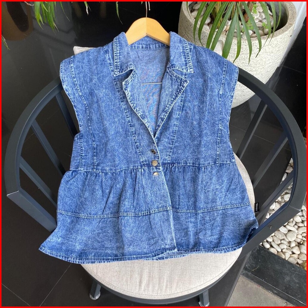 Melodie Vest Jeans Rompi Outer Jacket Atasan Wanita Jumbo Tanpa Lengan
