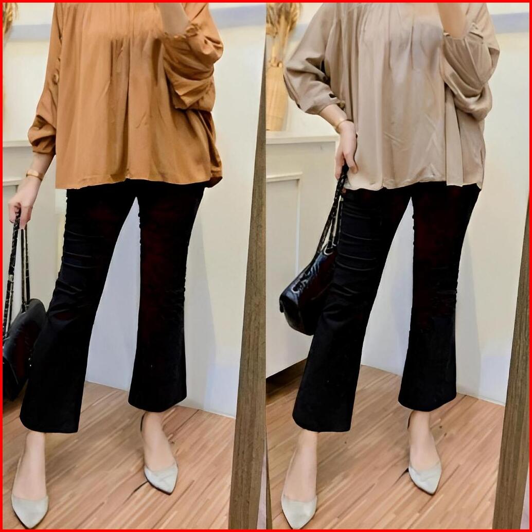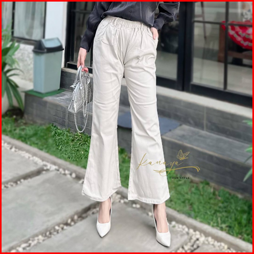 Kanaya - Celana Cutbray Wanita Jumbo Pinggang Karet Cotton Twill Combed Celana Kerja Wanita Casual