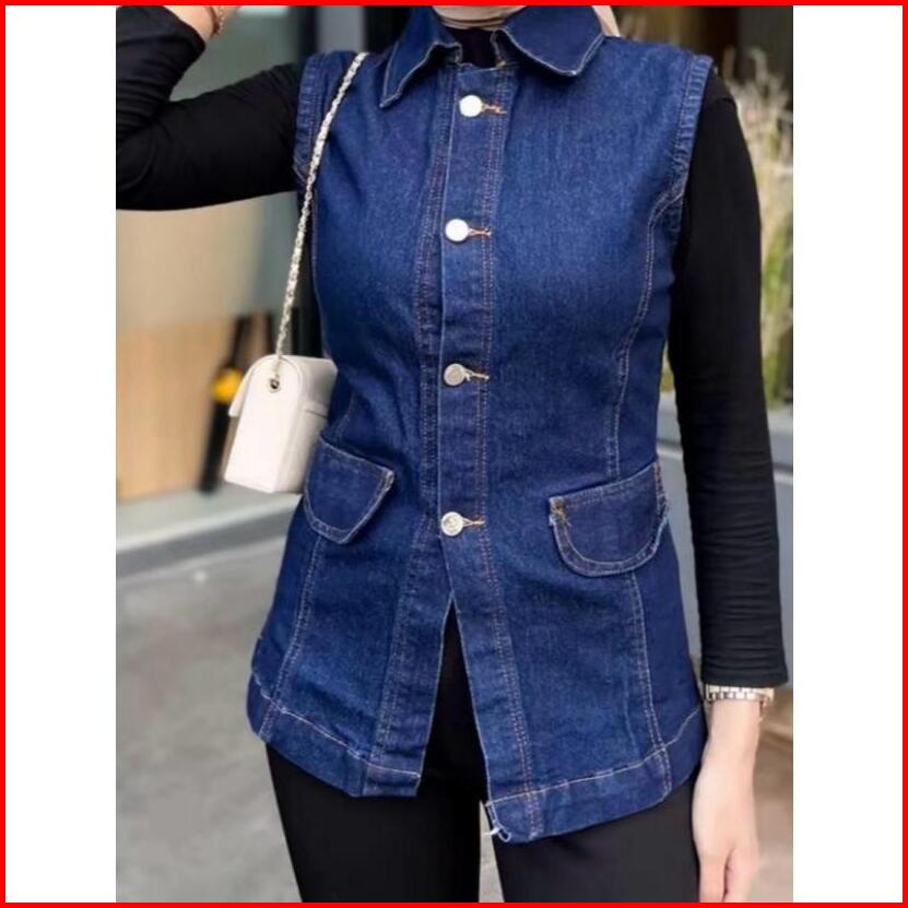 Vest Jeans - Outer Rompi Denim Berkancing Outfit Konser