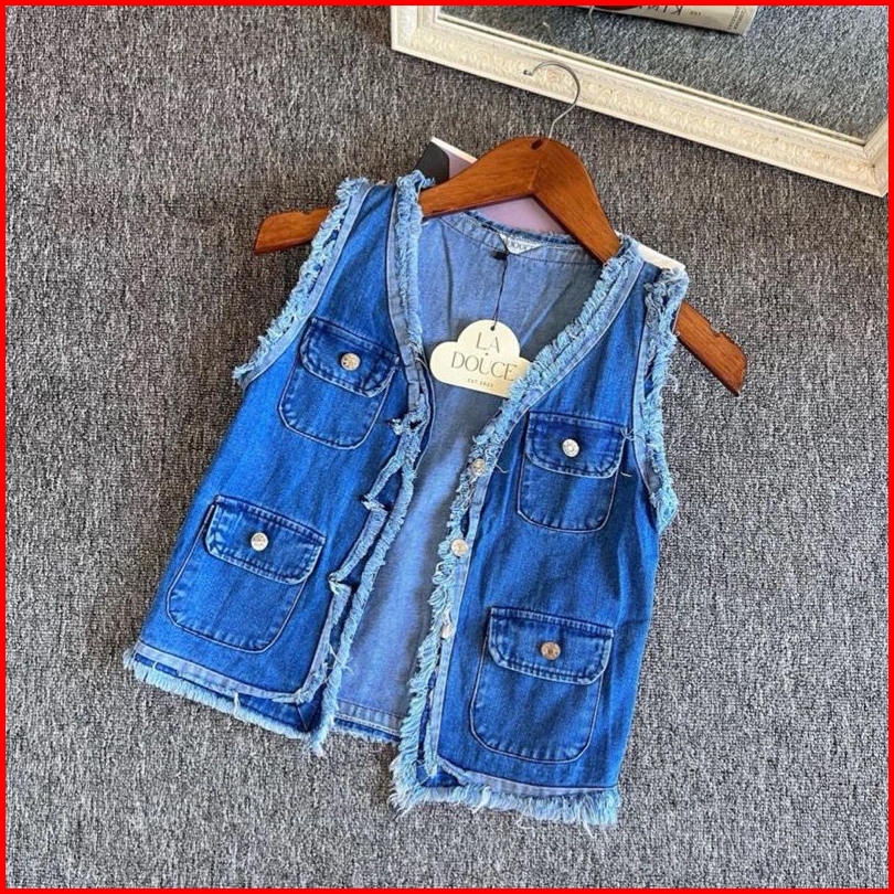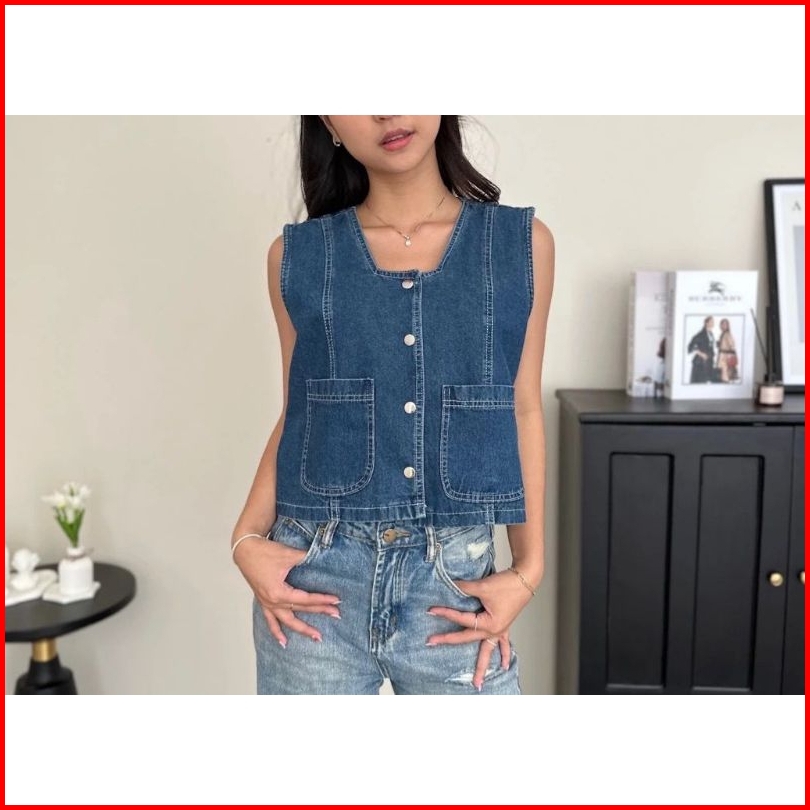 Asoka - Vest Jeans Denim Premium Atasan Wanita Rompi Outer Crop Terbaru Kekinian