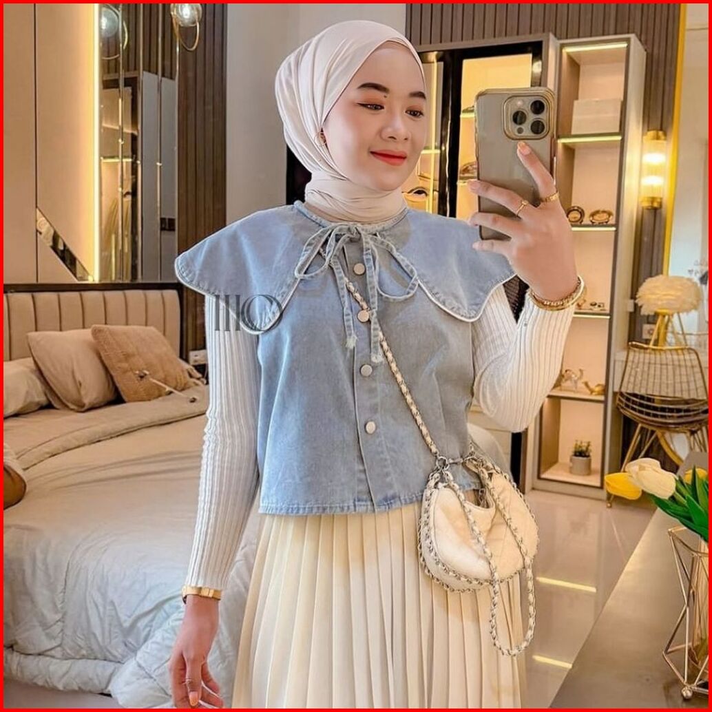 Hicoo Arsha Outer Pita Kerah Sailor - Terlaris Vest Denim Wanita
