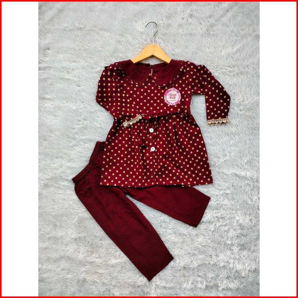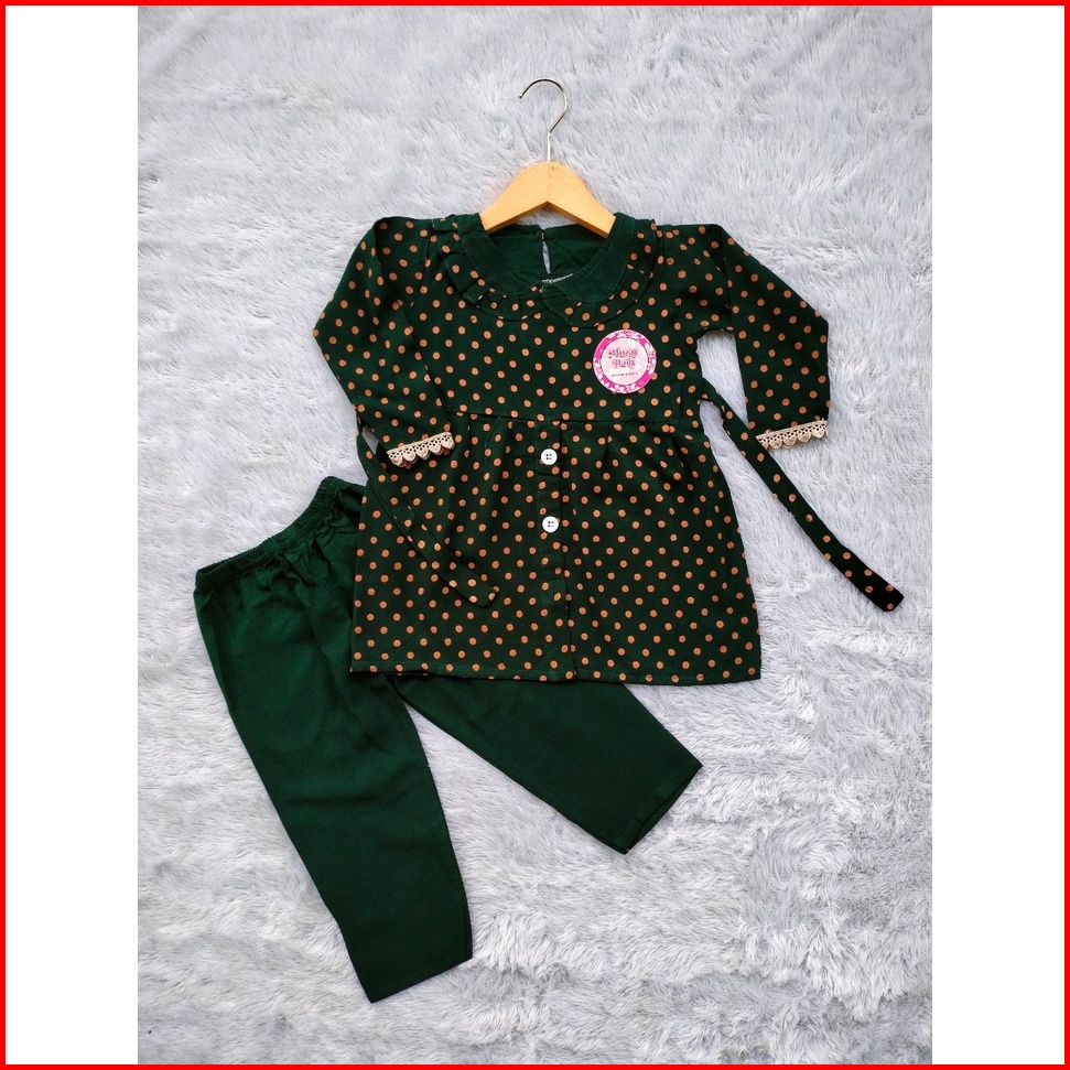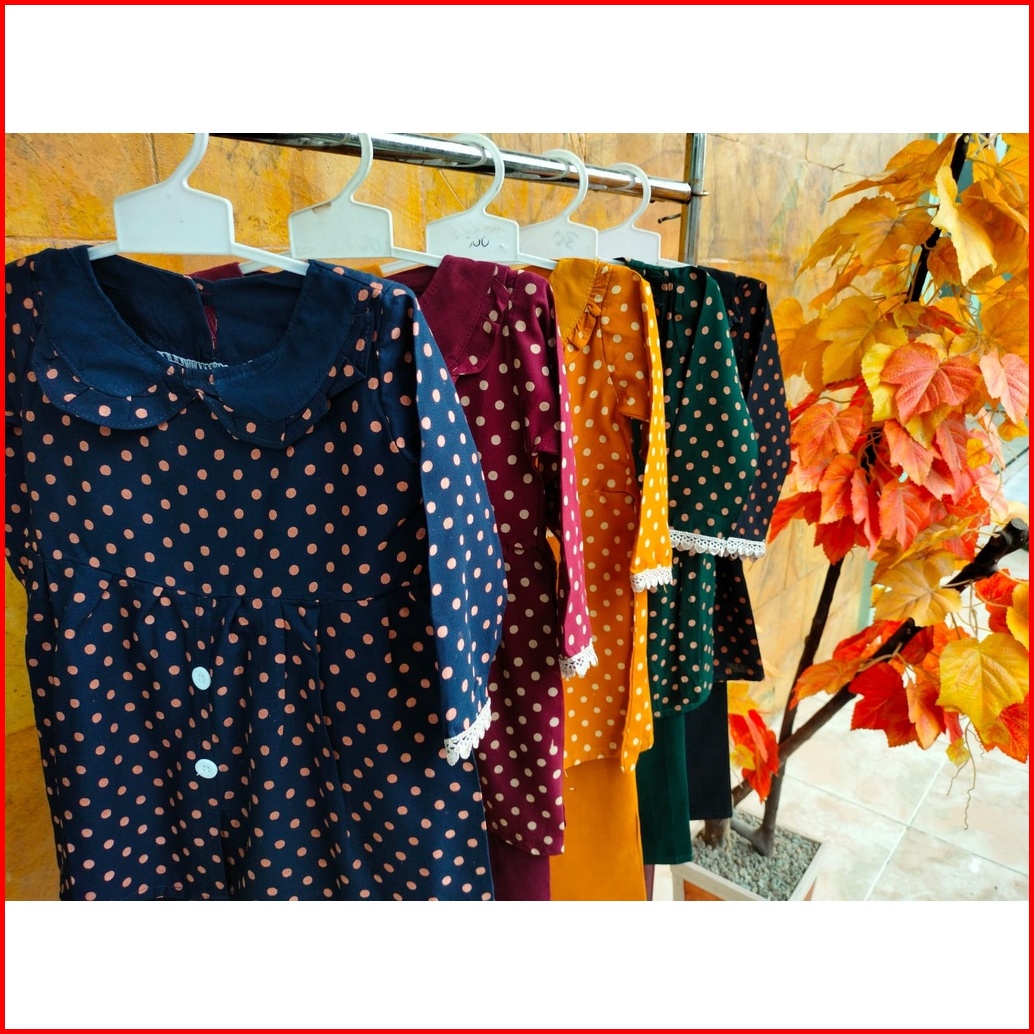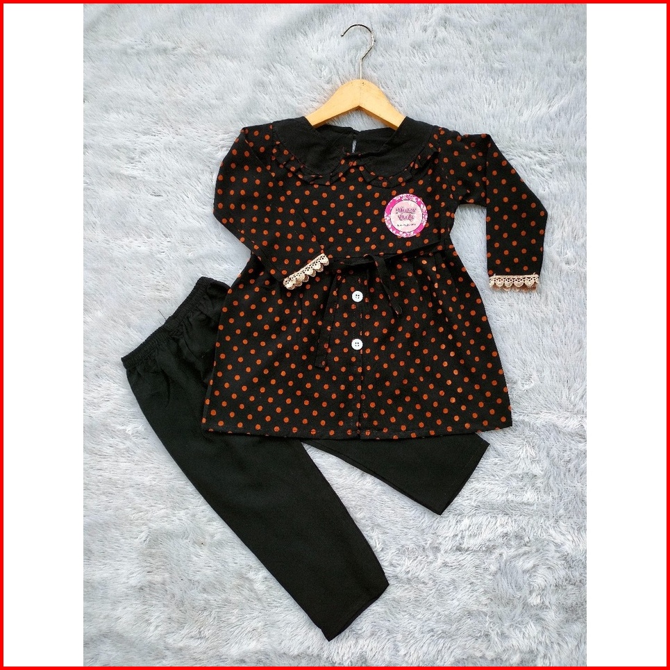Setelan Tunik Polkadot Umur 1-8 Tahun Midi Dress Anak Setelan Muslim Tunik Anak Perempuan