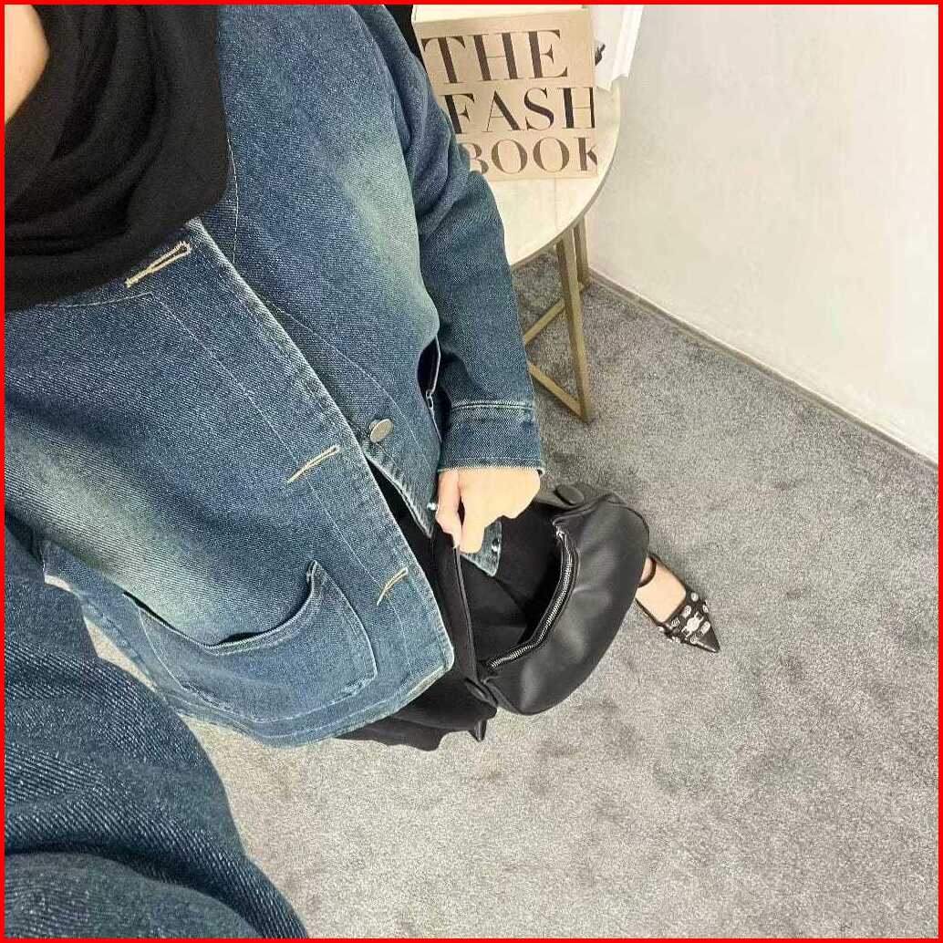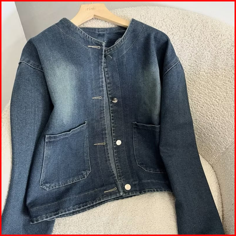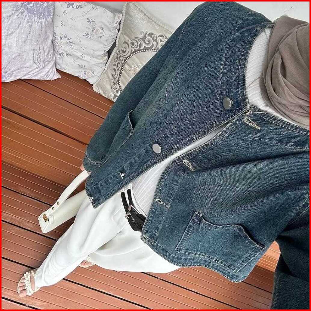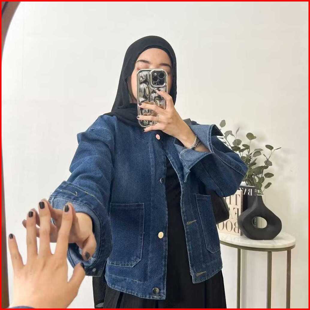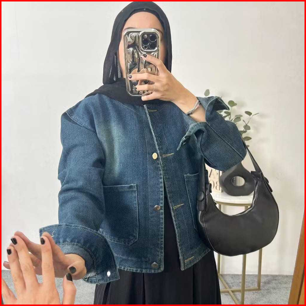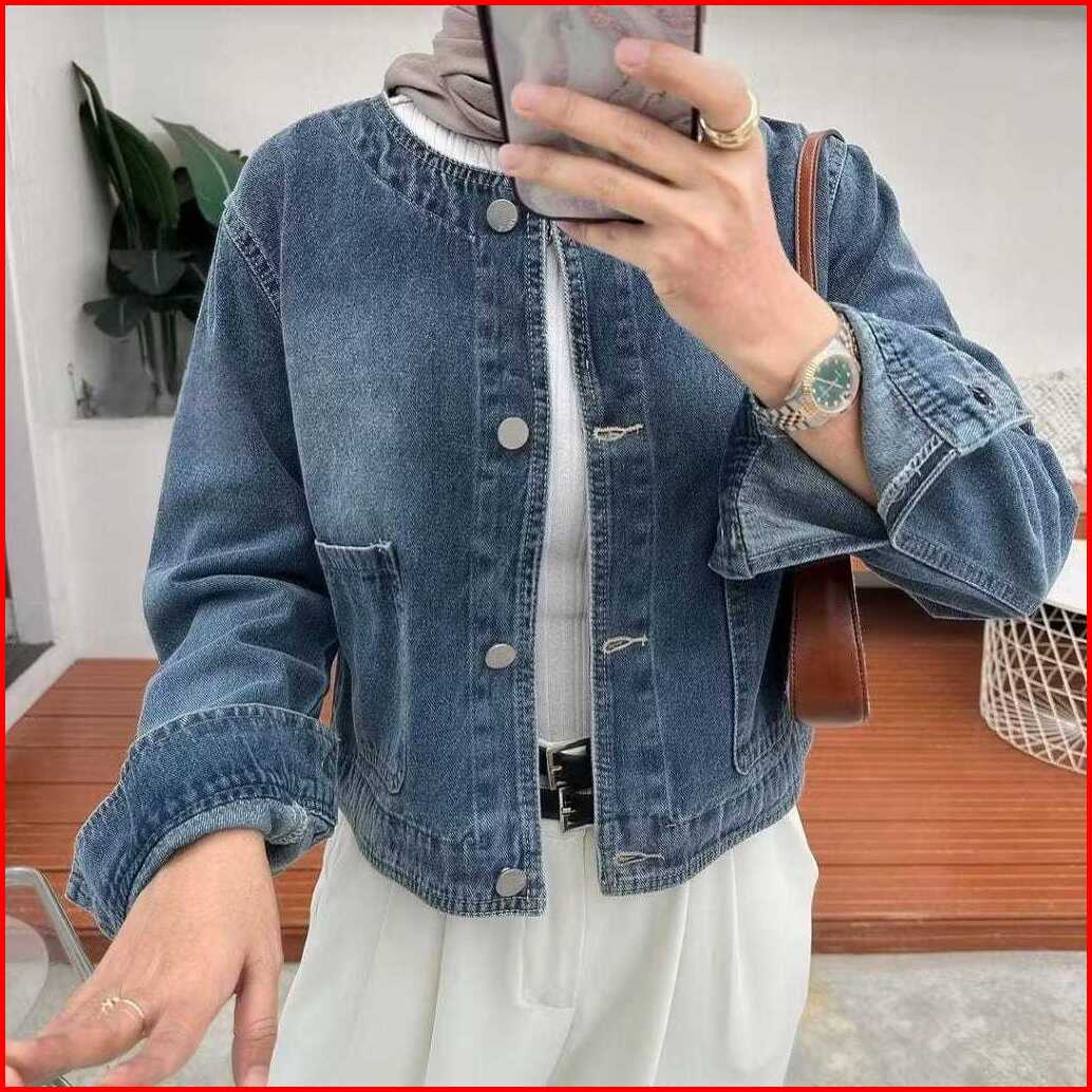 Clara Jaket Jeans Denim Crop Wanita Retro Vintage Oversize