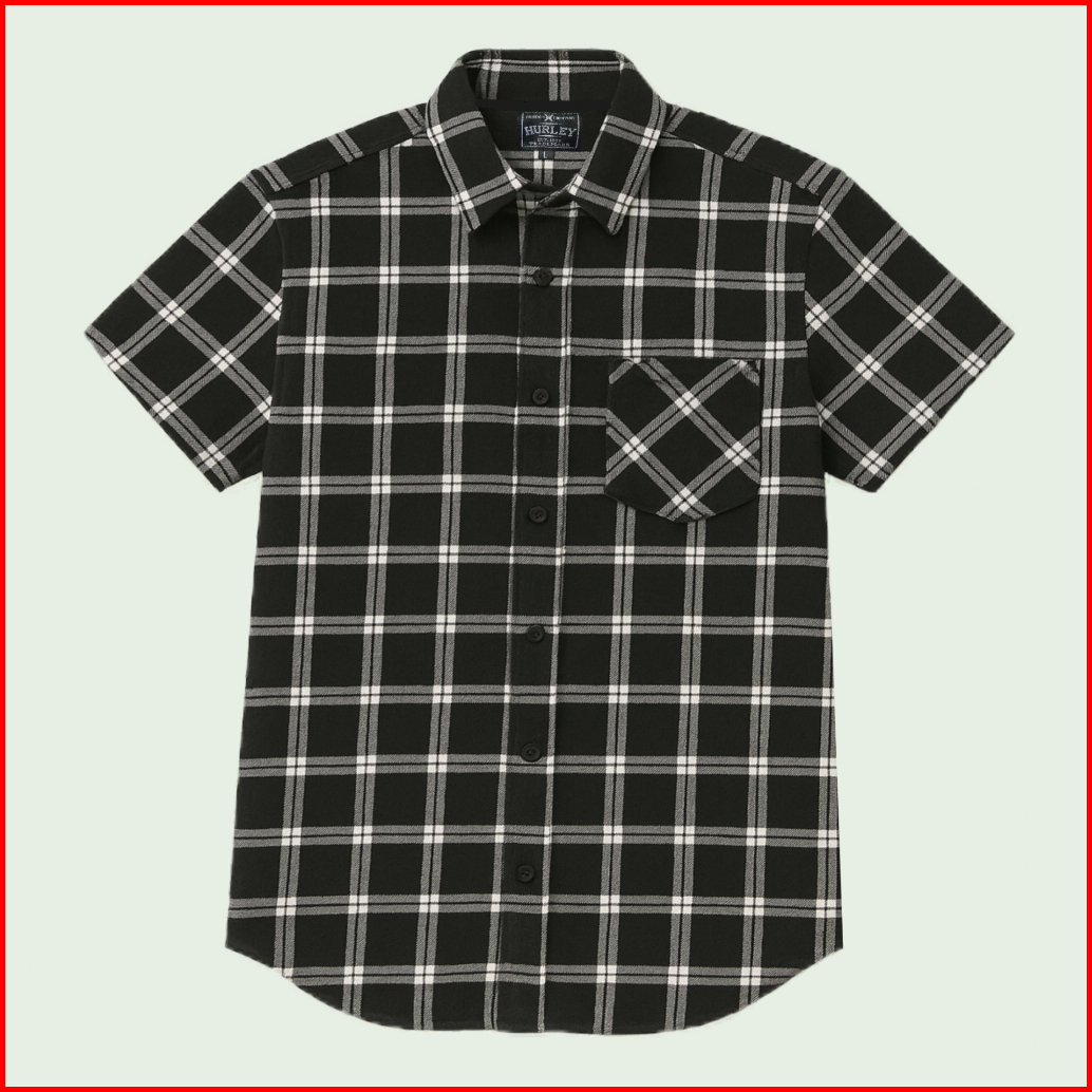 Aeyza - Kemeja Flanel Lengan Pendek Pria Dewasa Bahan Premium Motif Garis Putih Double