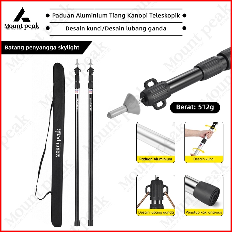 Mountpeak Tiang Tenda Aluminium Flysheet 2 8m Penyesuaian Teleskopik Empat Bagian