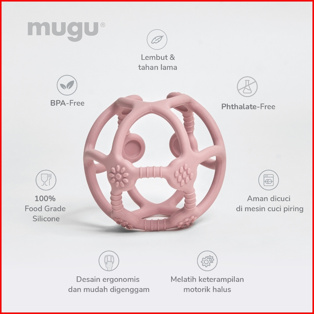 Mainan Gigitan Bayi Silicone Food Grade - Mugu Heart S Mate Sensory Teether