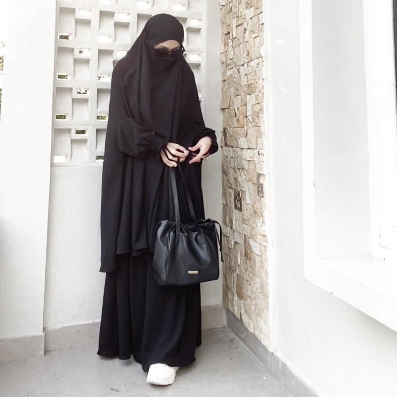 Inara One Set Crinkle Airflow Syari Set Frenchkhimar dan Rok keknian BIsa