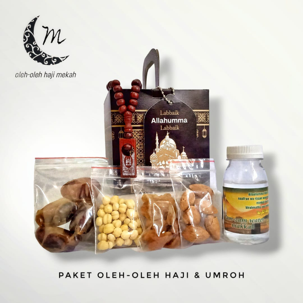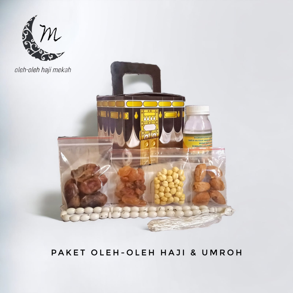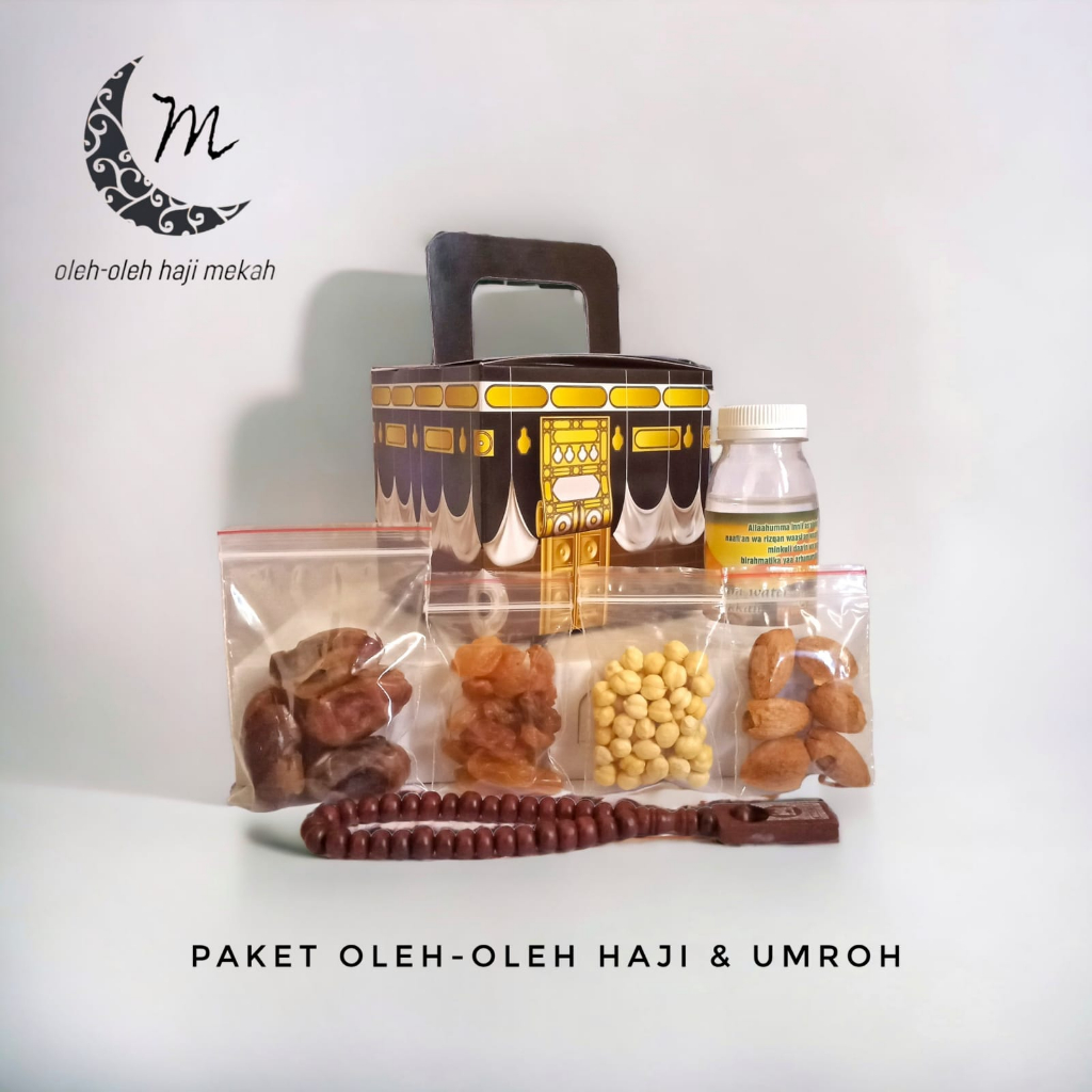 paket hemat dus Ka'bah + almond + tasbih oleh-oleh haji dan umrah