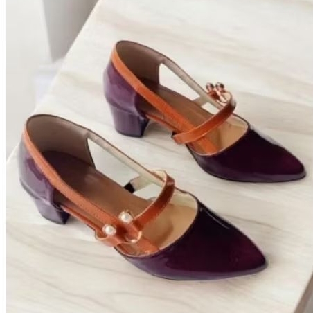 Sepatu Pantofel Wanita Hak 5cm Variasi Cincin Mutiara