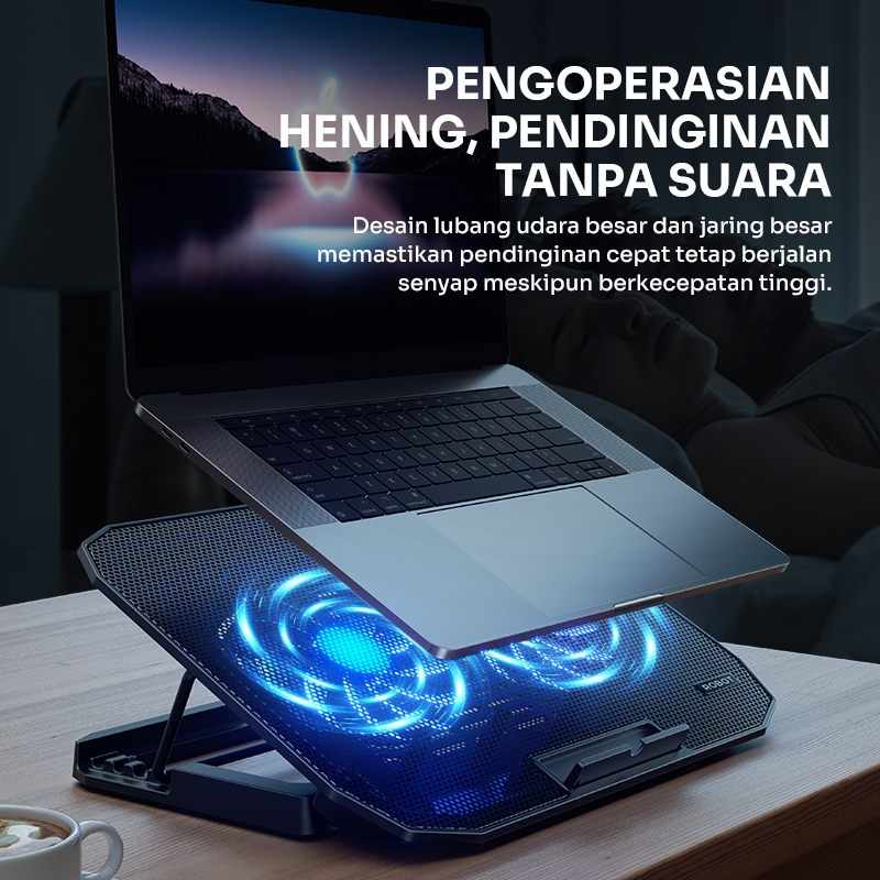 ROBOT Cooling Pad Laptop 10-16 inch Untuk Gaming Kipas 2 Inti Lengkap Dengan Slot HP Tipe Level Fan Speed With Phone Holder Silent Fan RCP10 Original - Garansi 1 Tahun