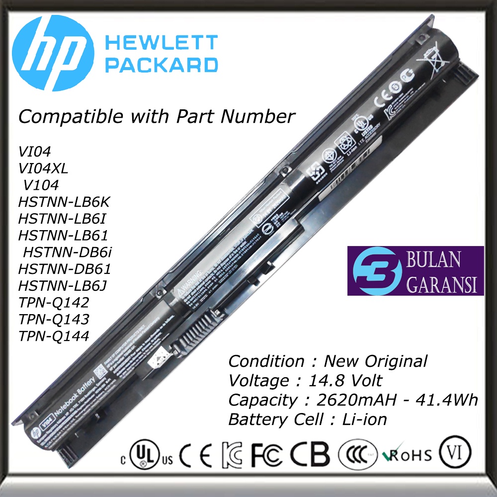 Baterai Original Laptop Hp VI04 Pavilion 14 V203TX V206TX V208TX V039TX V040TX V041TX V042TX V043TX ProBook 440-G2 445-G2 450-G2 455-2 Envy 14 15 17 HSTNN-UB61