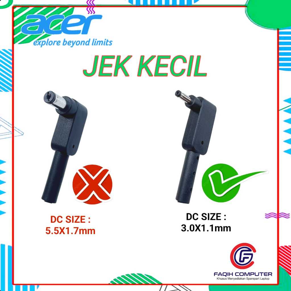 Adaptor Charger Acer Aspire 3 A314-22 A314-22G Series 19V-2.37A 45W DC 3.0x1.1mm