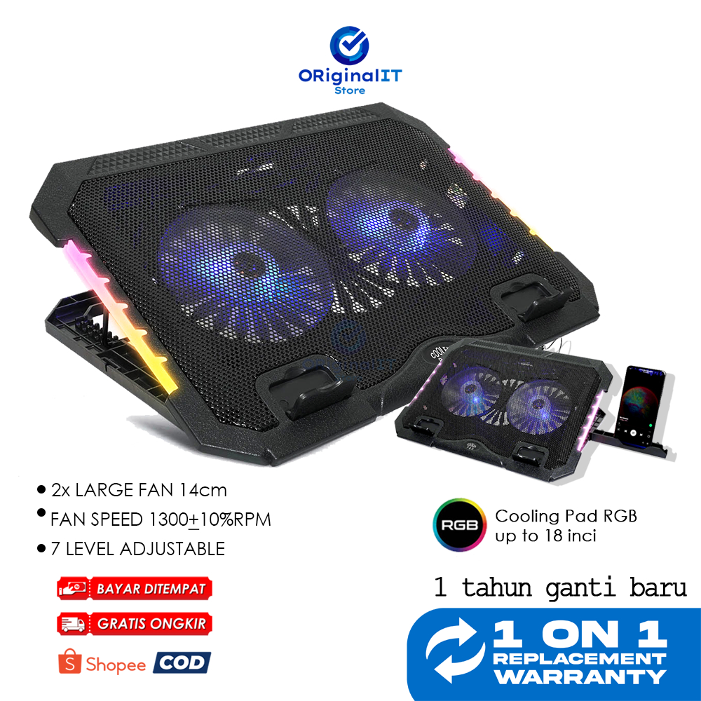 Cooling Pad Laptop 2 Fan RGB Kipas Laptop MTech S900 Coolingpad
