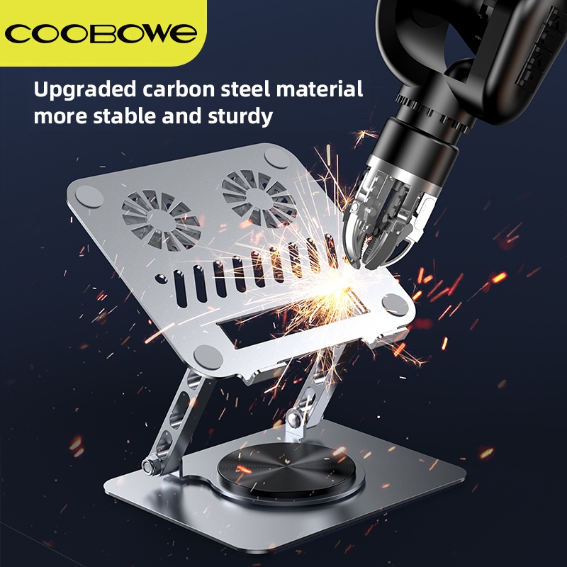 COOBOWE Stand Laptop foldable Rotasi 360° Paduan Aluminium Kipas Laptop Stand Cooling Pad / Pendingin Portabel dudukan Laptop kipas