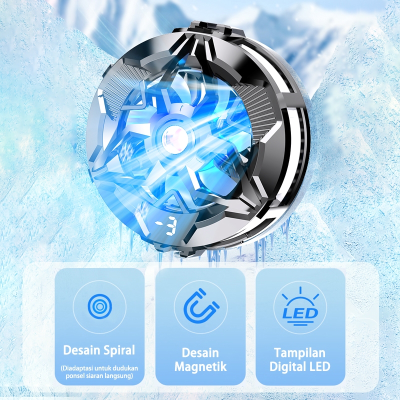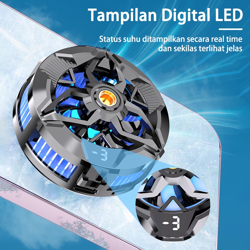 AKona Fan Cooler HP Gaming Kipas Pendingin HP Cooling Pad Bisu Lampu Rgb Tampilan LED (Free 2 Klip + Stiker magnetik)