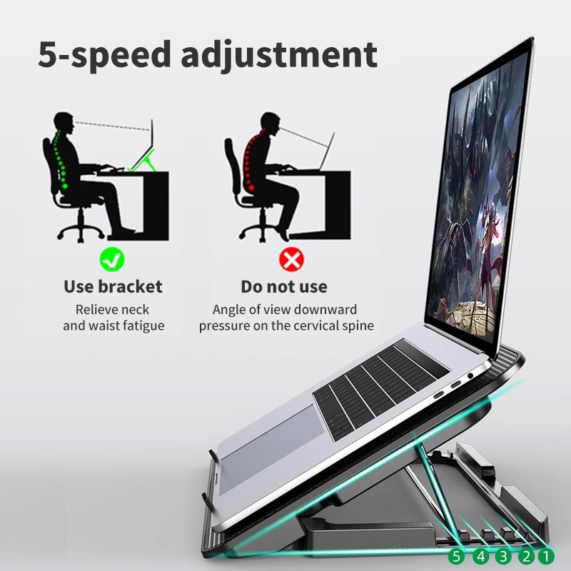 Cooling Pad Laptop Fan Portable 2/6 Fans LED Silent Noise Cooler Foldable 9"-17" LED Light Fan Adjustable Height