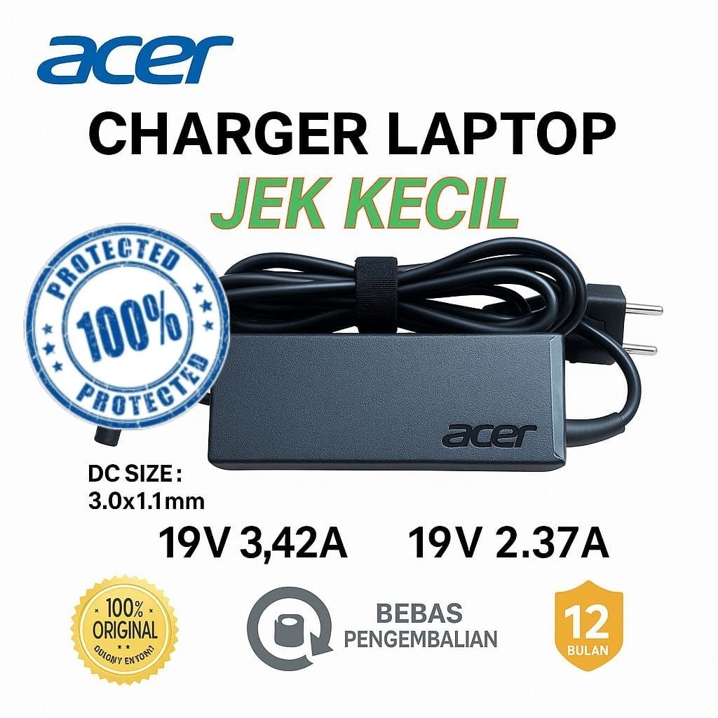 [ORI] Charger Laptop Acer Aspire 3 A314 Aspire 5 A514 A515 Swift 3 SF314 SF515 SF113 SW312 – 45W / 65W 19V 2.37A / 3.42A Colokan Kecil 3.0x1.1mm