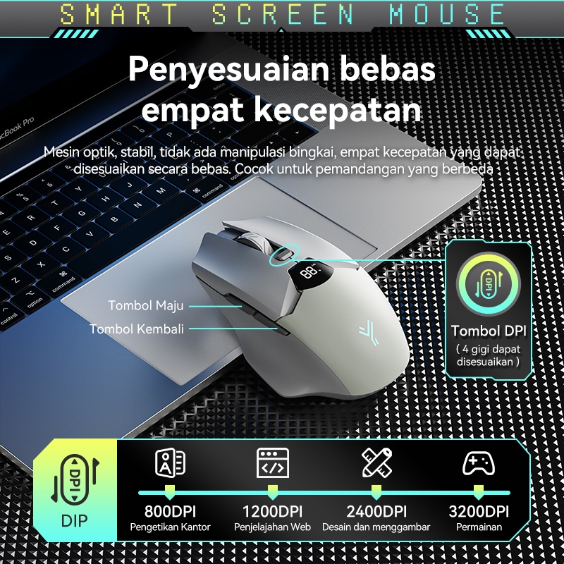 OLYPS Mouse Wireless Bluetooth Silent Click Rechargeable Gaming Laptop Tanpa Kabel 3200DPI With LED