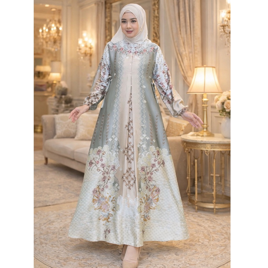 Gamis Silk Premium Anissa Motif Flowy Busui Friendly Elegan & Mewah Kondangan Quality Grade A