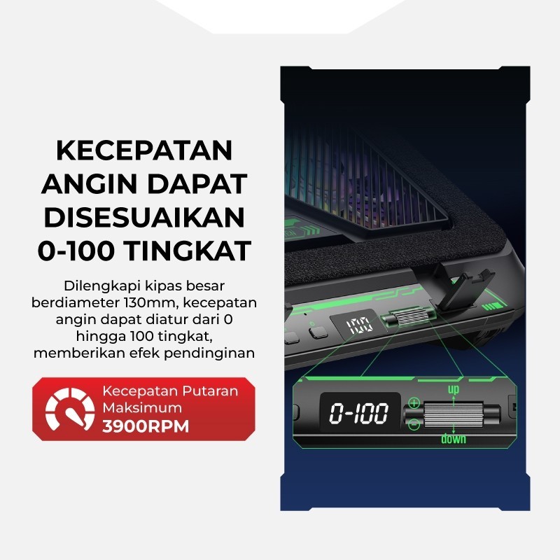 GAMEN Cooling Pad Laptop GCP310 Kipas 2 Inti 100 Level Fan Speed 3900 RPM Dengan Phone Holder Silent Fan Kipas Angin Laptop