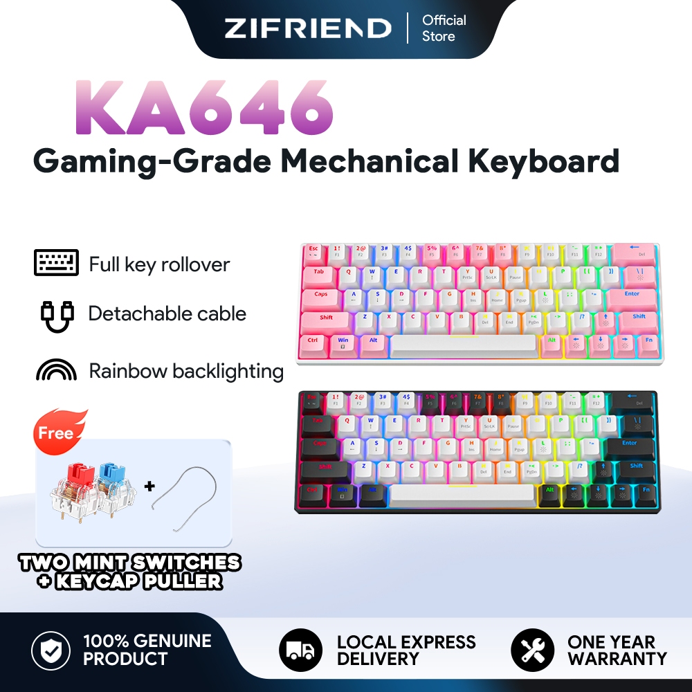 ZIFRIEND KA646 Mechanical Keyboard 63 Keys RGB Backlit Kibot Type-C Wired Hot Swappable 60 PERSEN PC Gaming Keyboard Compatible With Both Laptops And Desktops