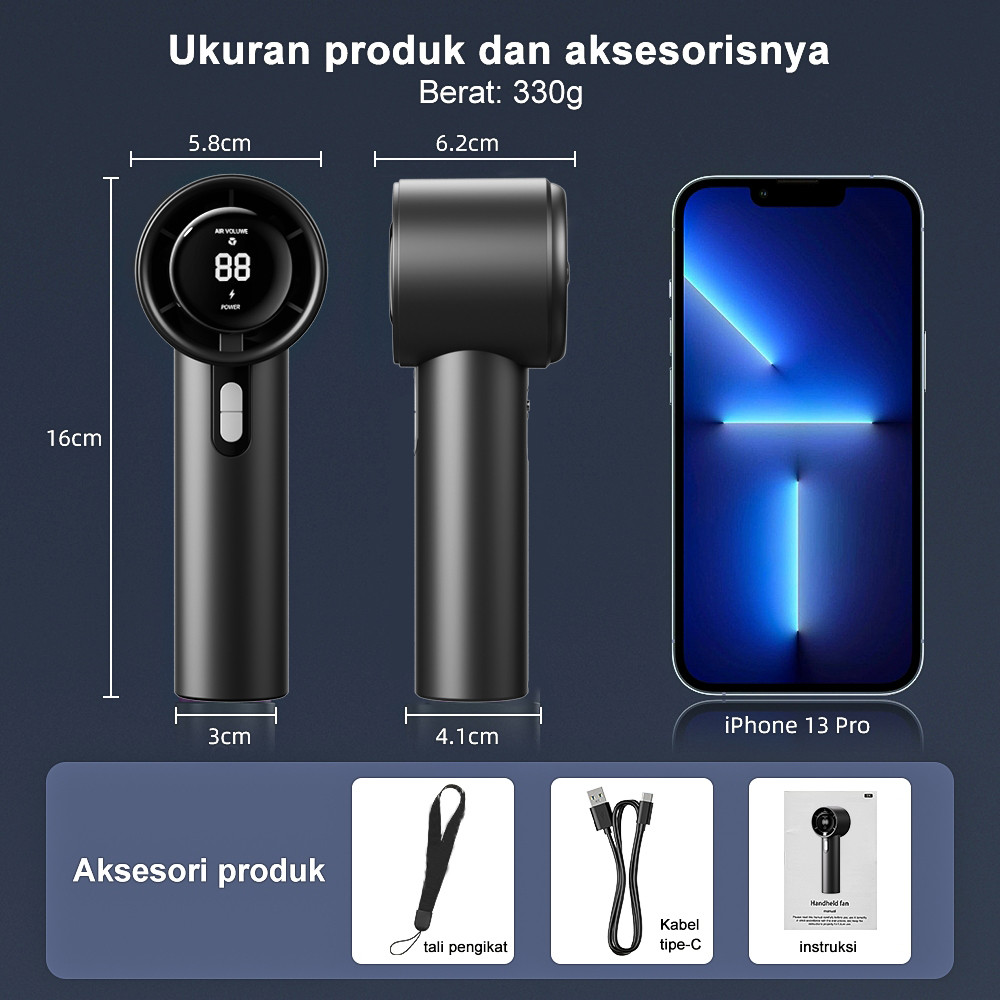 [SunnyDay] kipas angin Turbo Mini Strong Wind 100 Gear Wind Speed kipas Digital Display Adjustable kipas tangan untuk olahraga luar ran dan pendinginan cepat