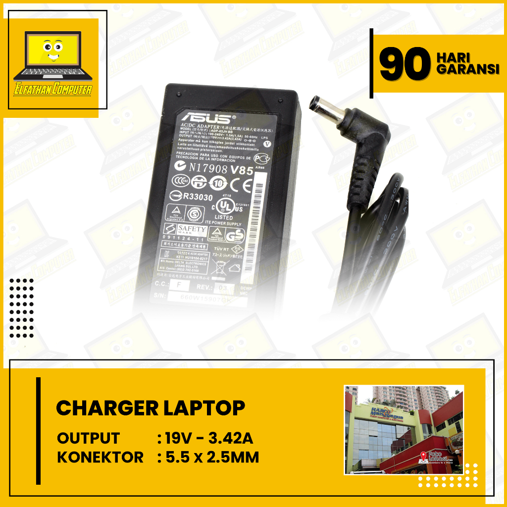 Charger Carger Laptop Asus A45V X44H A46V K43S A43S A42F K42F 60Watt (5.52.5mm)