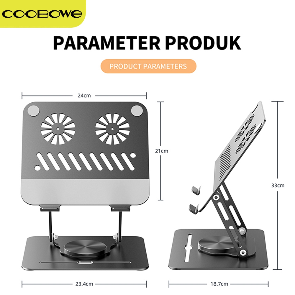 COOBOWE Laptop Stand Holder 360 °Rotatable Bisa stand laptop cooling pad Dilipat Dudukan Notebook stand laptop aluminium kipas with Magnetic Cooling Fan