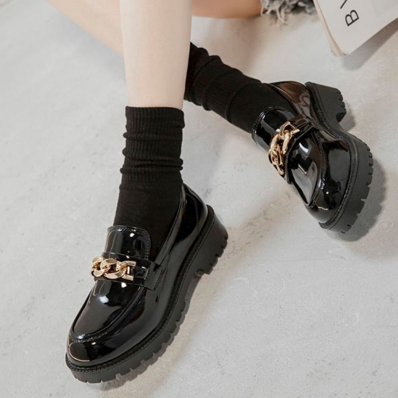 Sepatu Docmart Wanita Rantai golds Premium Terbaru Fashion Korea Sepatu Flat loafers Kasual Mary janes Hitam 09
