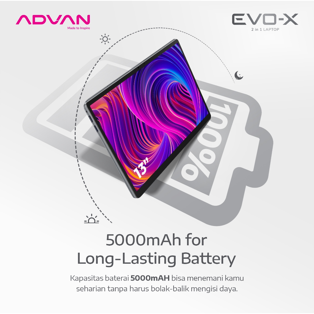 [FREE STYLUS PEN +KEYBOARD] ADVAN Laptop 2 in 1 EVO-X 16” / 13" Touchscreen Detachable 2.5K Display Intel i3-1215U/Intel N150/Intel N100 12GB/512GB Windows 11 - Garansi Resmi 1 Tahun