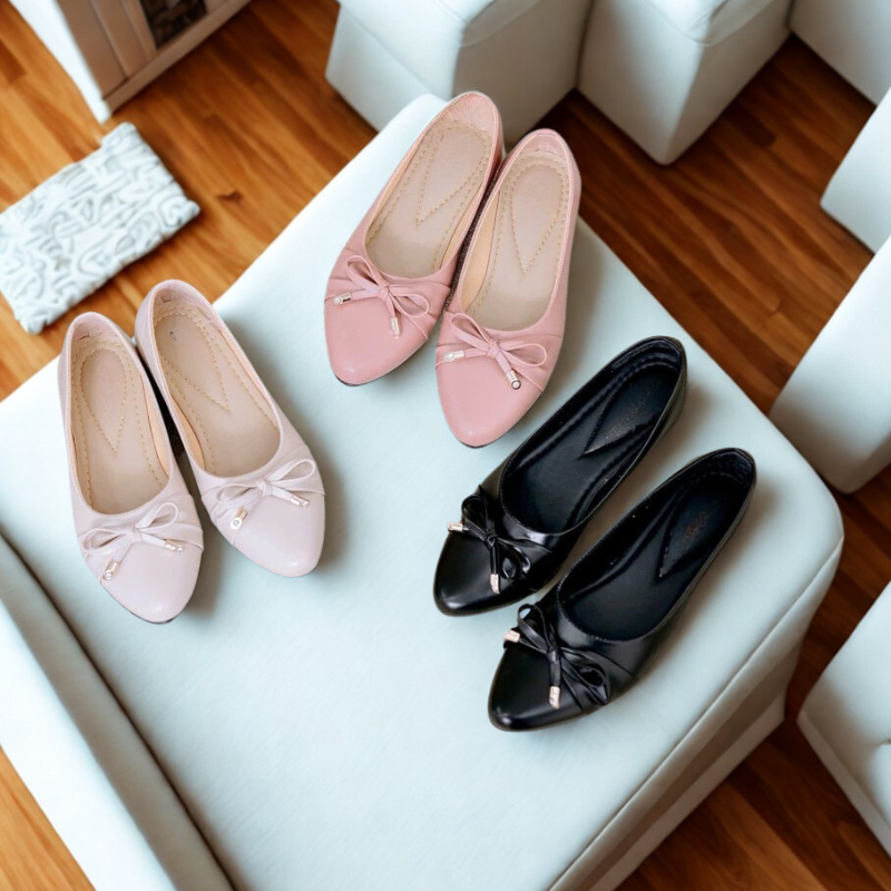 Balet terpuler 2025 /Sepatu Wanita/ Flatshoes Pita Sintetis pariasi ujung bambu Ukuran 37-40