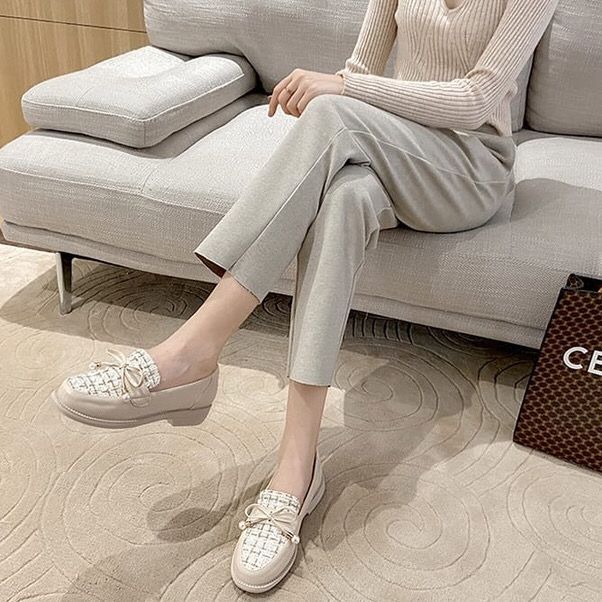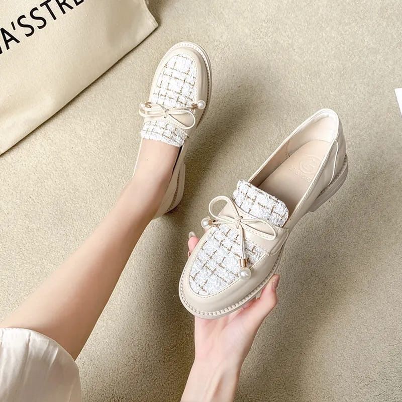 DIATA Sepatu docmart wanita pita mutiara gaya kekinian seppatu loafers sepatu oxford