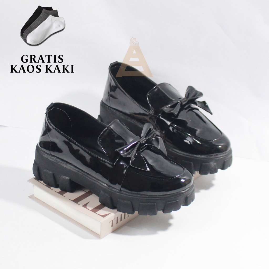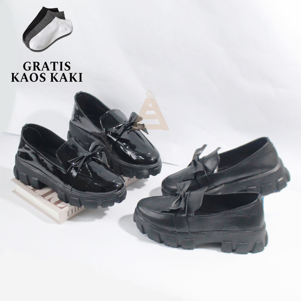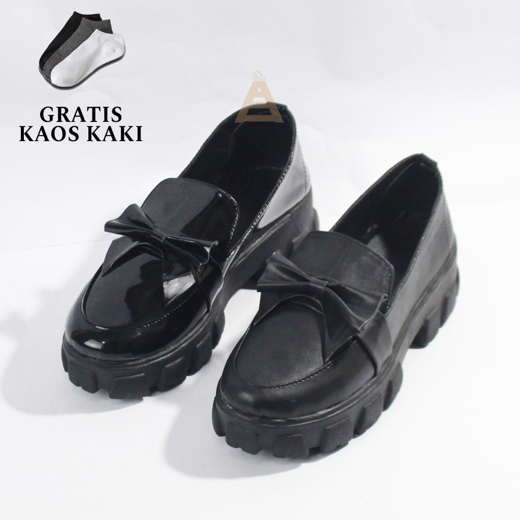 AS Sepatu DOCMART DASI Slip On Wanita Sepatu Oxford Hitam Wanita Sepatu Kerja Wanita Casual Shoes