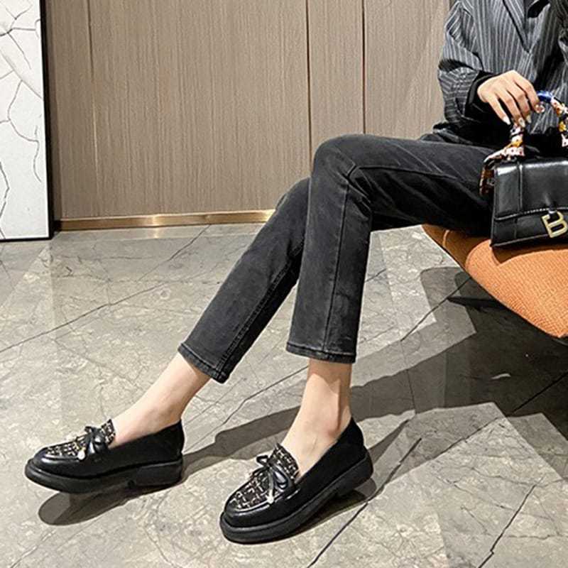 Sepatu Wanita Docmart Loafers Pita Mutiara Gaya Kekinian Premium Quality