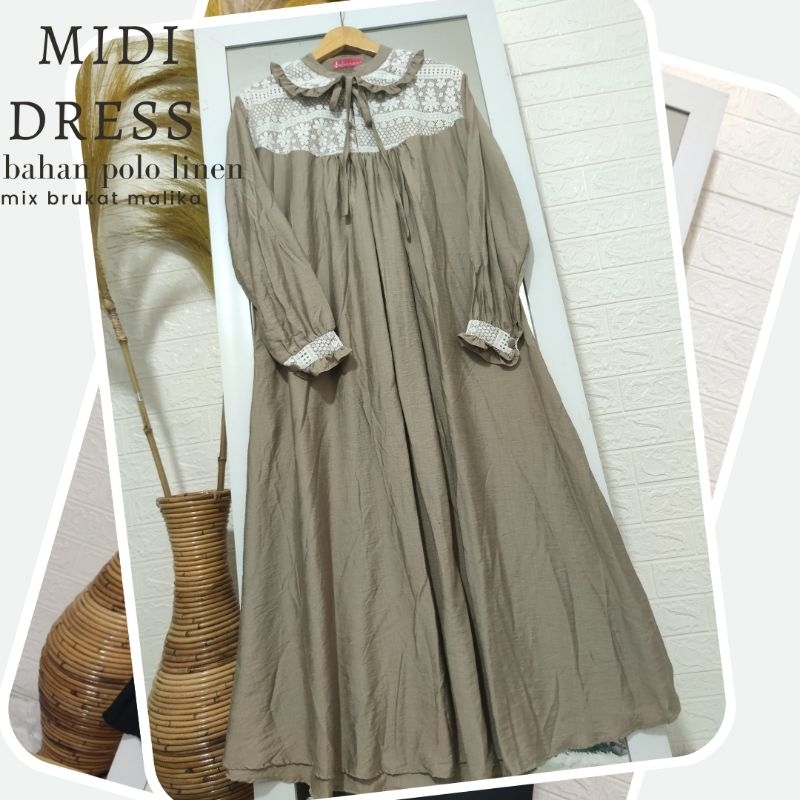 MIDI DRESS LO LINEN SILK MIDI DRESS MAXI BRUKAT MALIKA DRESS LEBARAN 2023