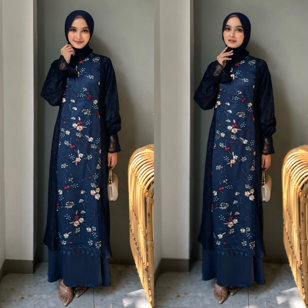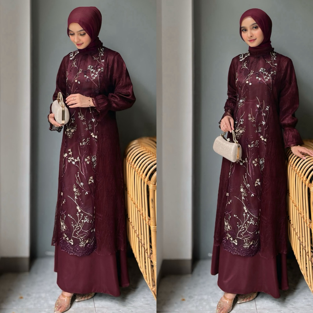 hijablabel SPECIAL PRICE ZEYA DRESS SET DRESS + TUNIK BLOUSE LACE DRESS GAMIS KONDANGAN DRESS PESTA TILE PREMIUM GAMIS PESTA TILE