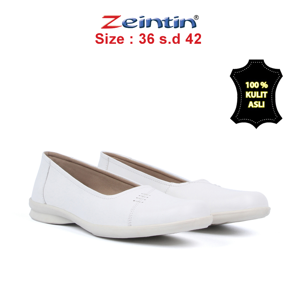 Zeintin - Sepatu Wanita Kulit Putih Pantofel Wanita Sepatu Formal Wanita Sepatu Perawat Wanita BJ