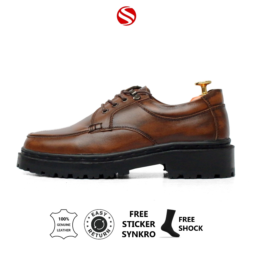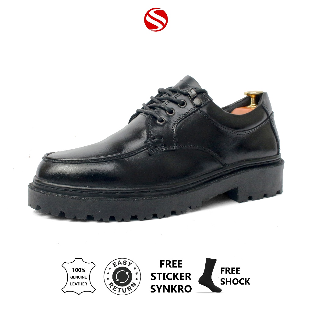39-43 Synkro Satya - Sepatu Pria Kasual Formal Oxford Hak 5cm Kulit Asli Hitam