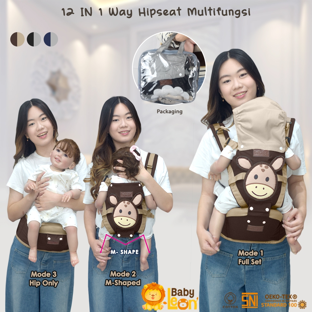 BABY LEON Gendongan Depan Model Terbaru Hipseat Baby Gendongan Bayi Depan BY-60-GB Gendongan Anak Depan Multifungsi Baby Carrier Gendongan Multifungsi Gendongan Samping