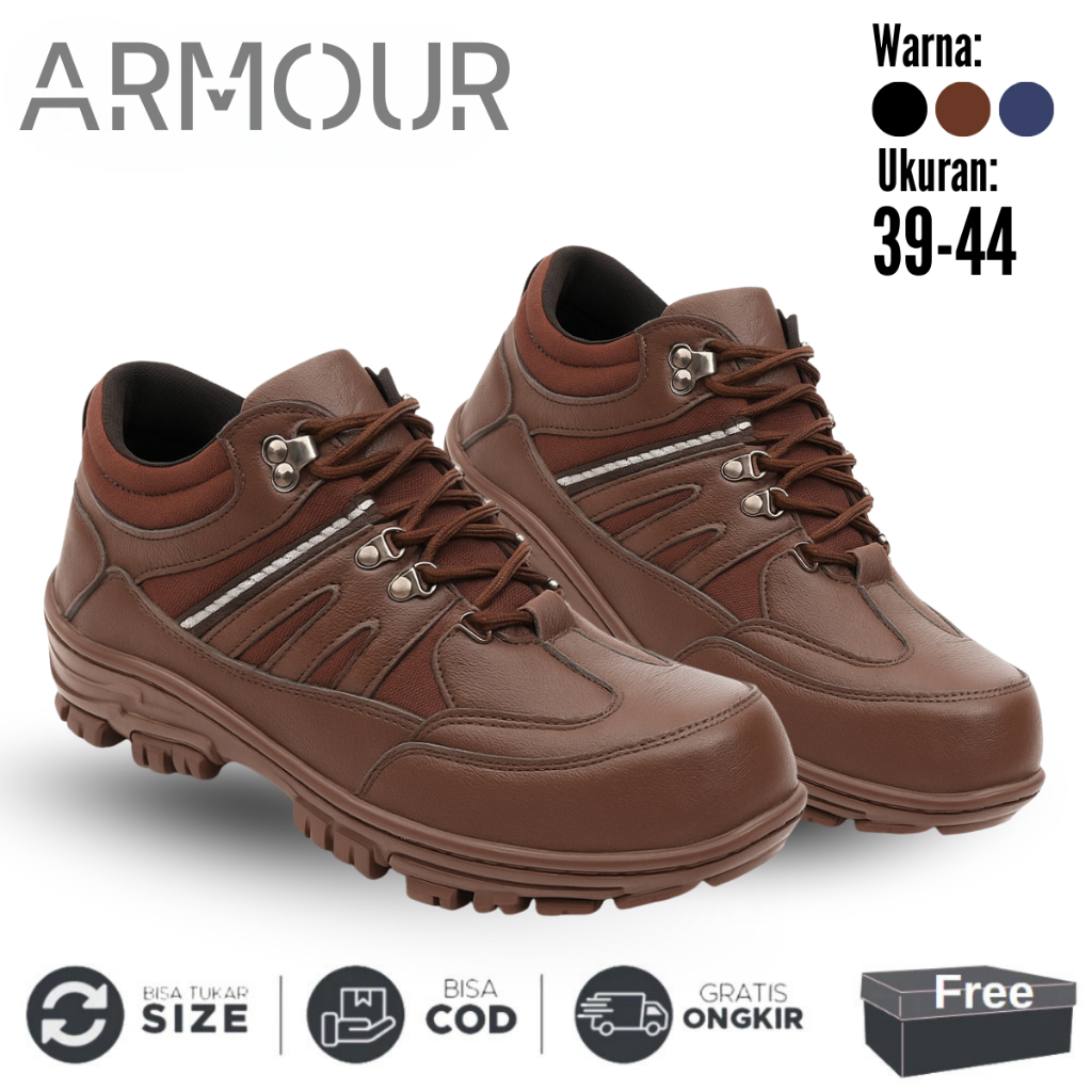 Sepatu Boots Safety Pria Kerja Pr0yek Armor Hitam Coklat Cream Size 39-44 Work & Safety Kerja lapangan Hiking Outdo