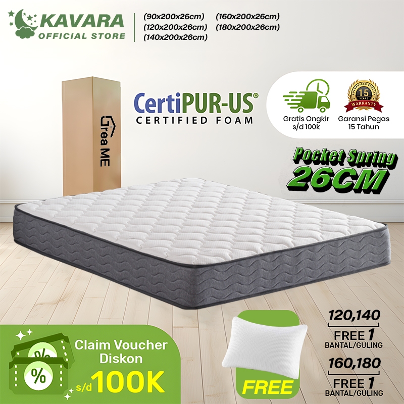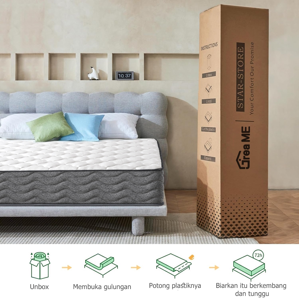 【】Kasur Springbed Super Bonnet Spring 26CM Alami Busa High Density Memory Foam & Spring Pocket Anti Alergi/ Anti Bau/Anti Tungau Bonus 1 Bantal