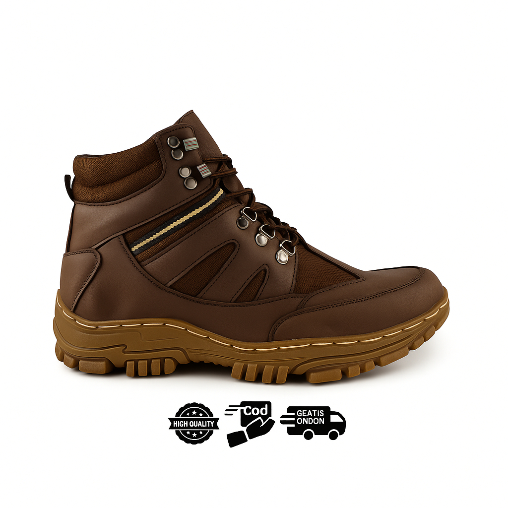 Sepatu Safety Pria Boots Pr0yek Ujung Besi Septy Shoes Boot - Septi Kerja Lapangan Kulit Sintetis Tali Sepatu Kerja