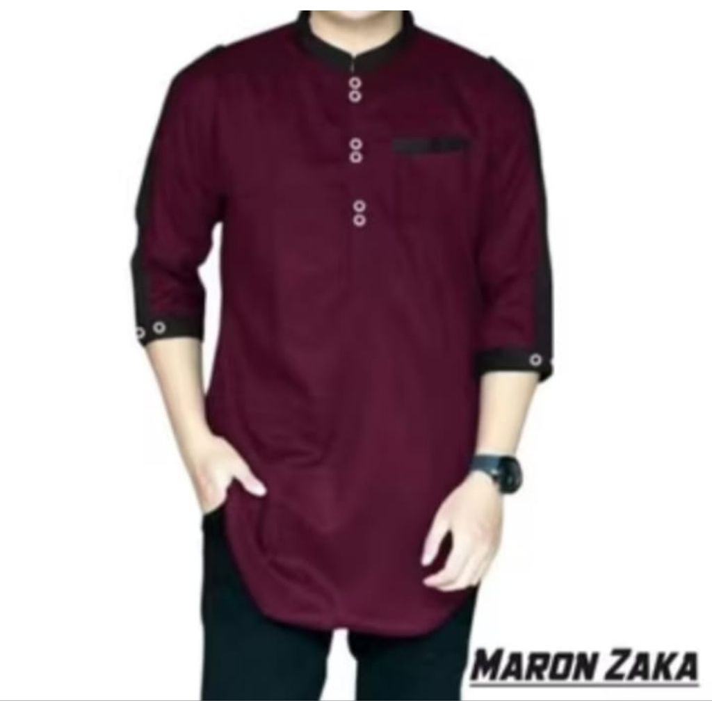 Koko KURTA Zaka kombinasi lengan 3/4 Katun poli
