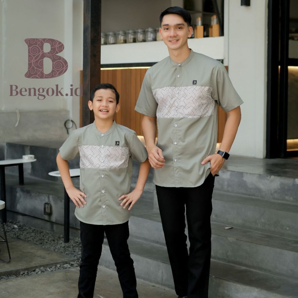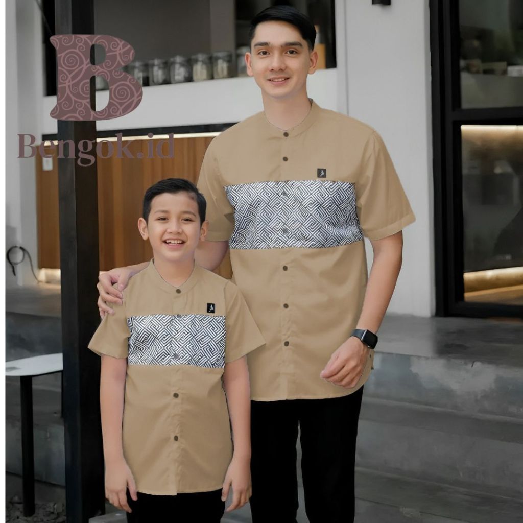Baju Koko lengan pendek Couple motif kombinasi batik warna hitam Couple Ayah dan Anak premium warna hitam
