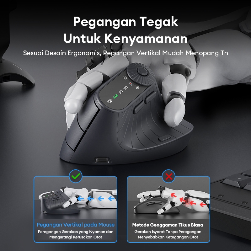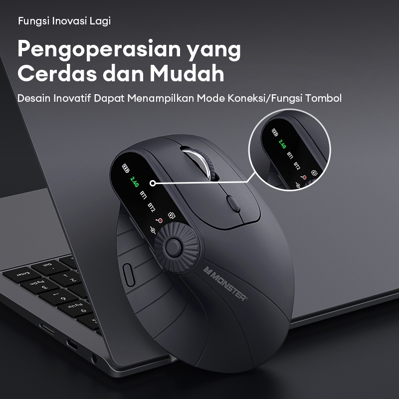 Monster M2 PRO 2.4G Mouse Wireless Bluetooth Vertical Ergonomic Dual Mode 2.4G+BT Four Dpi Switch 500mAh Large Battery