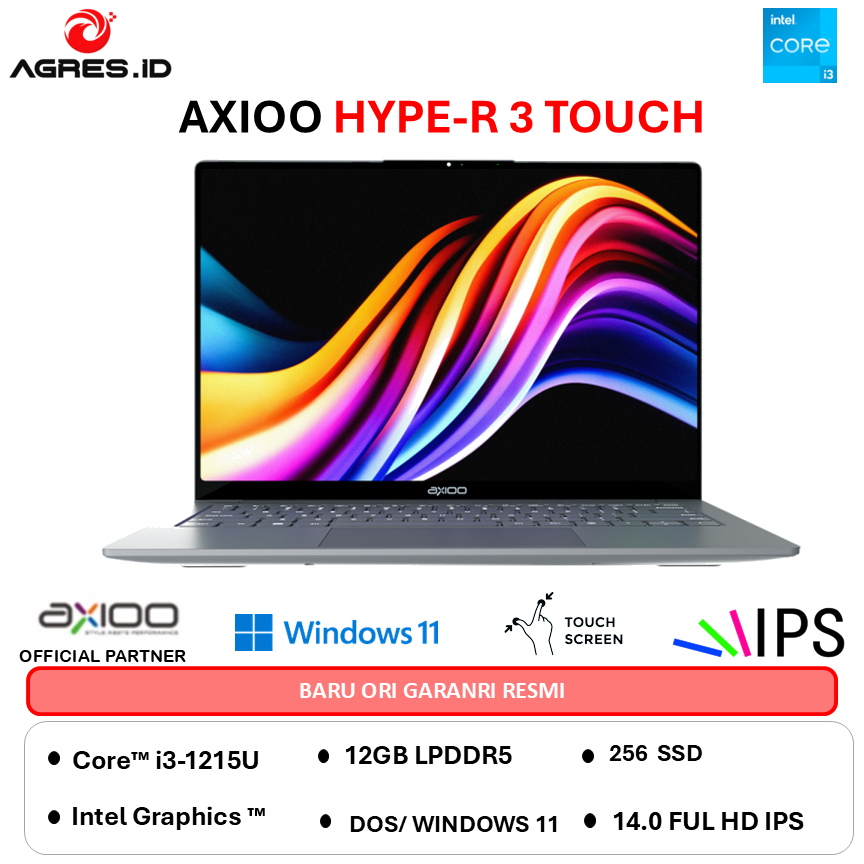 AXIOO HYPE-R 3 TOUCH INTEL CORE I3 1215 - RAM 12GB 256GB WINDOWS 11 14.0FHD IPS