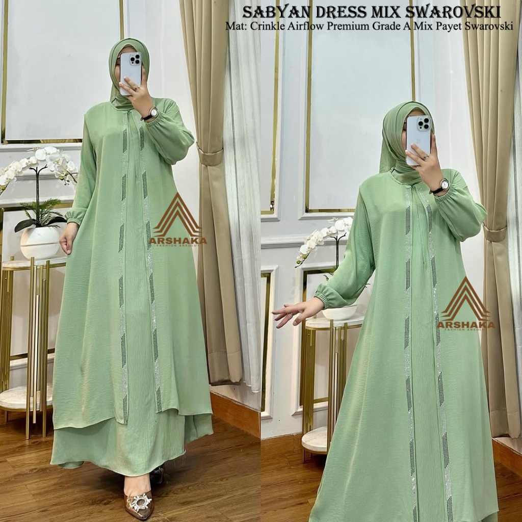 Sabyan Dress Gamis Abaya Bahan Crinkle Airflow Premium Gade A Mix et Swarovski Mewah Elegan Manis